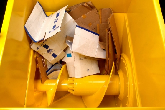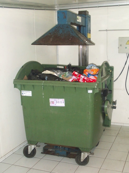 - Zoals de naam al zegt, een schroef perst het afval in een container